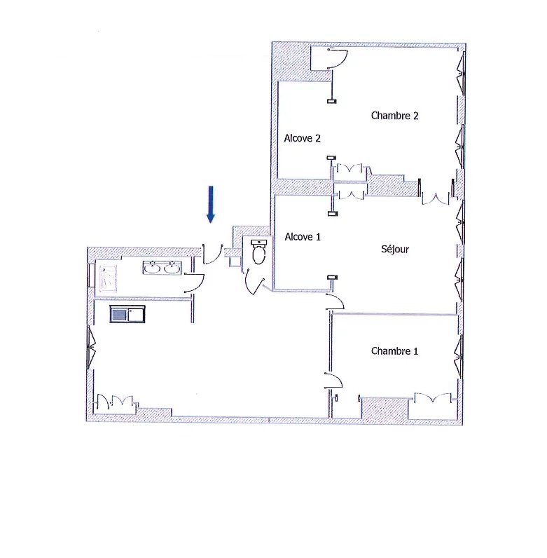 L’appartement est en bon état général et bénéficie de jolis éléments d’époque : parquet point de Hongrie, carreaux de ciment, hauteurs sous plafond et fenêtres double vitrage récentes.